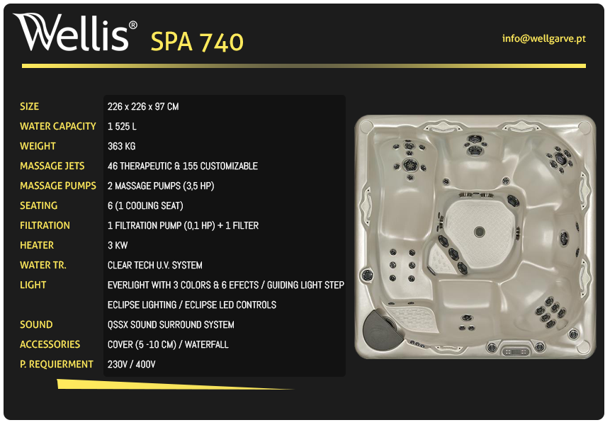 Equipado com a mais recente tecnologia de alimentação, consegue obter uma poupança superior aos jacuzzi's tradicionais